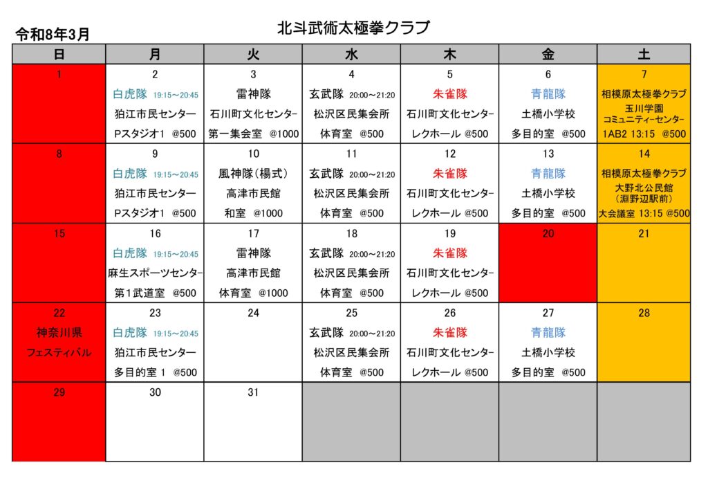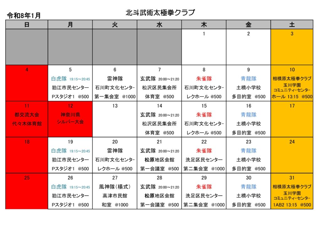 今月の練習日程